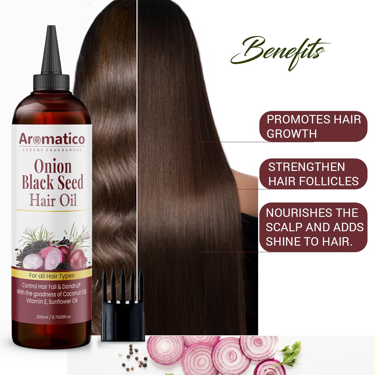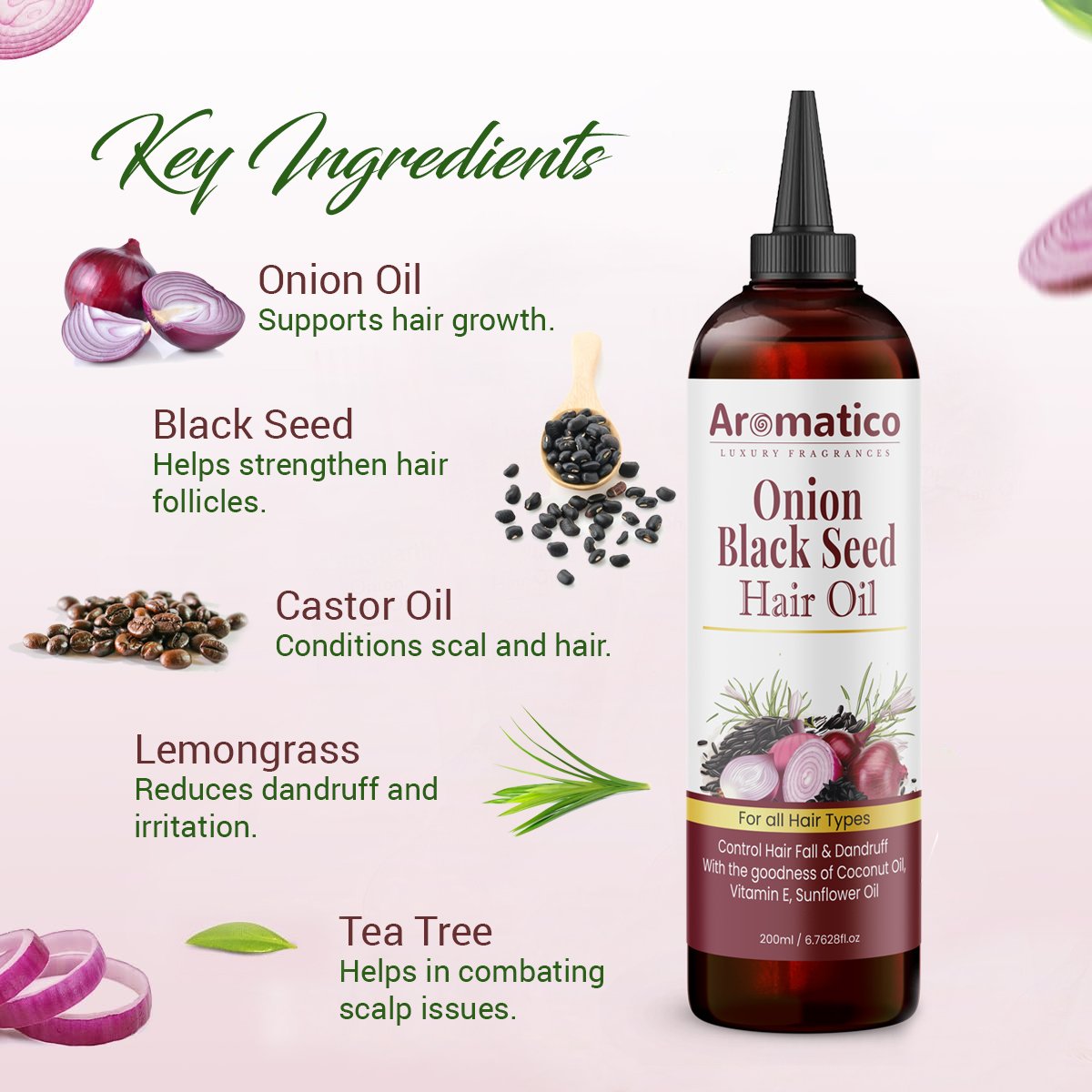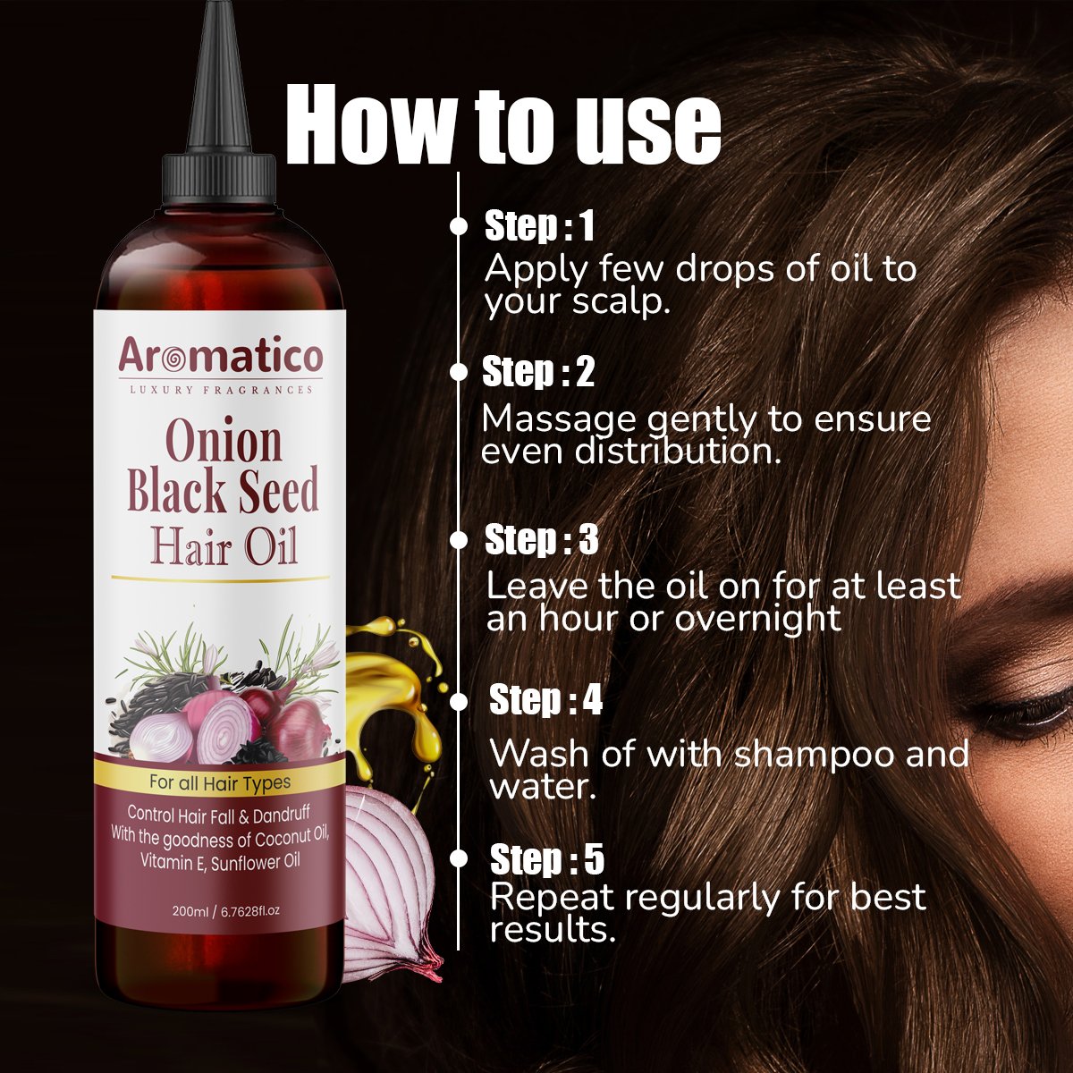 - ✅ HELPS DANDRUFF CONTROL & MAKE HAIR LUSTROUS: our Onion Black Seed Hair Oil blend of oils nourishes hair, making it dandruff-free and velvety smooth, offers healthy and attractive hair.